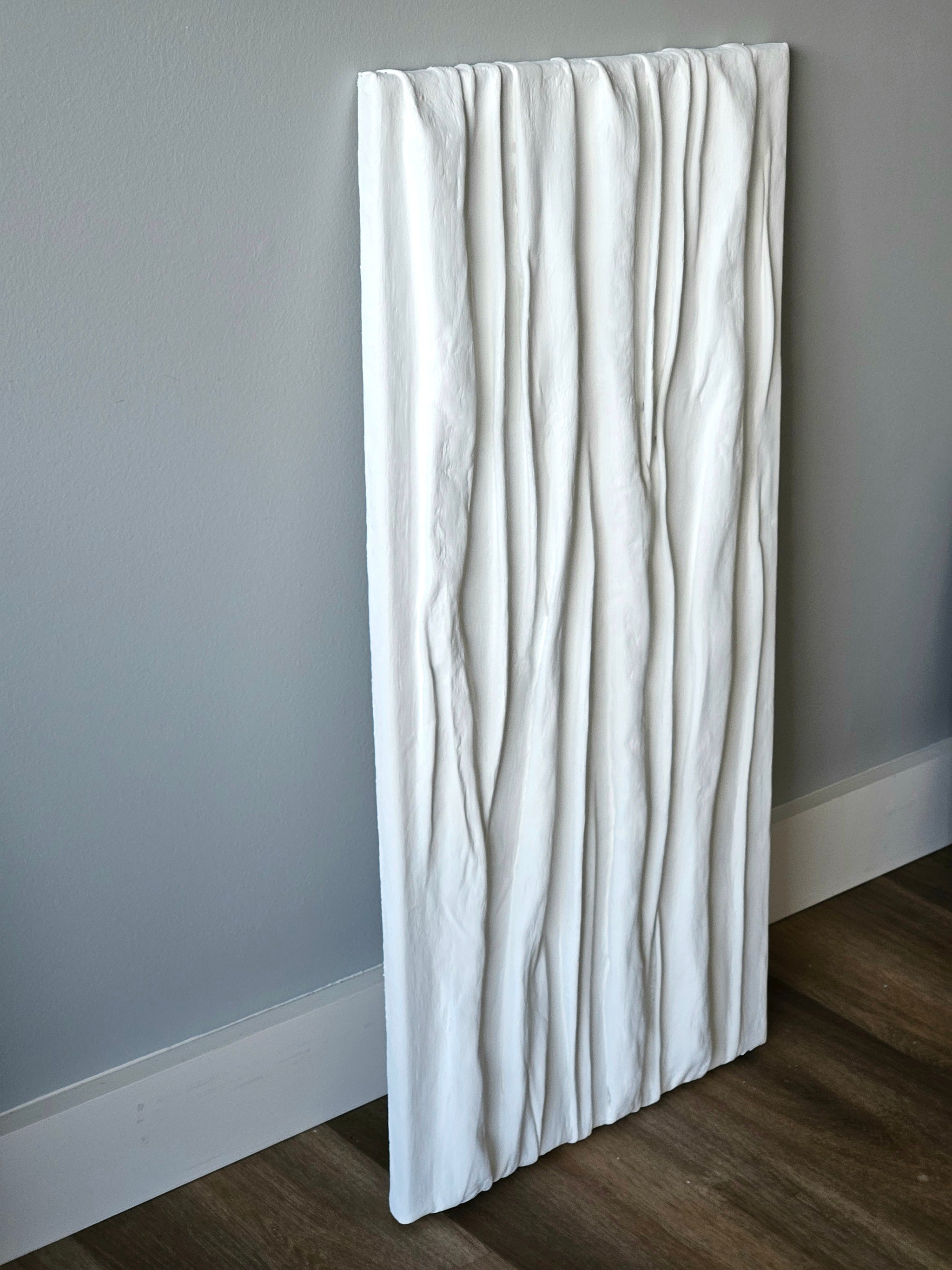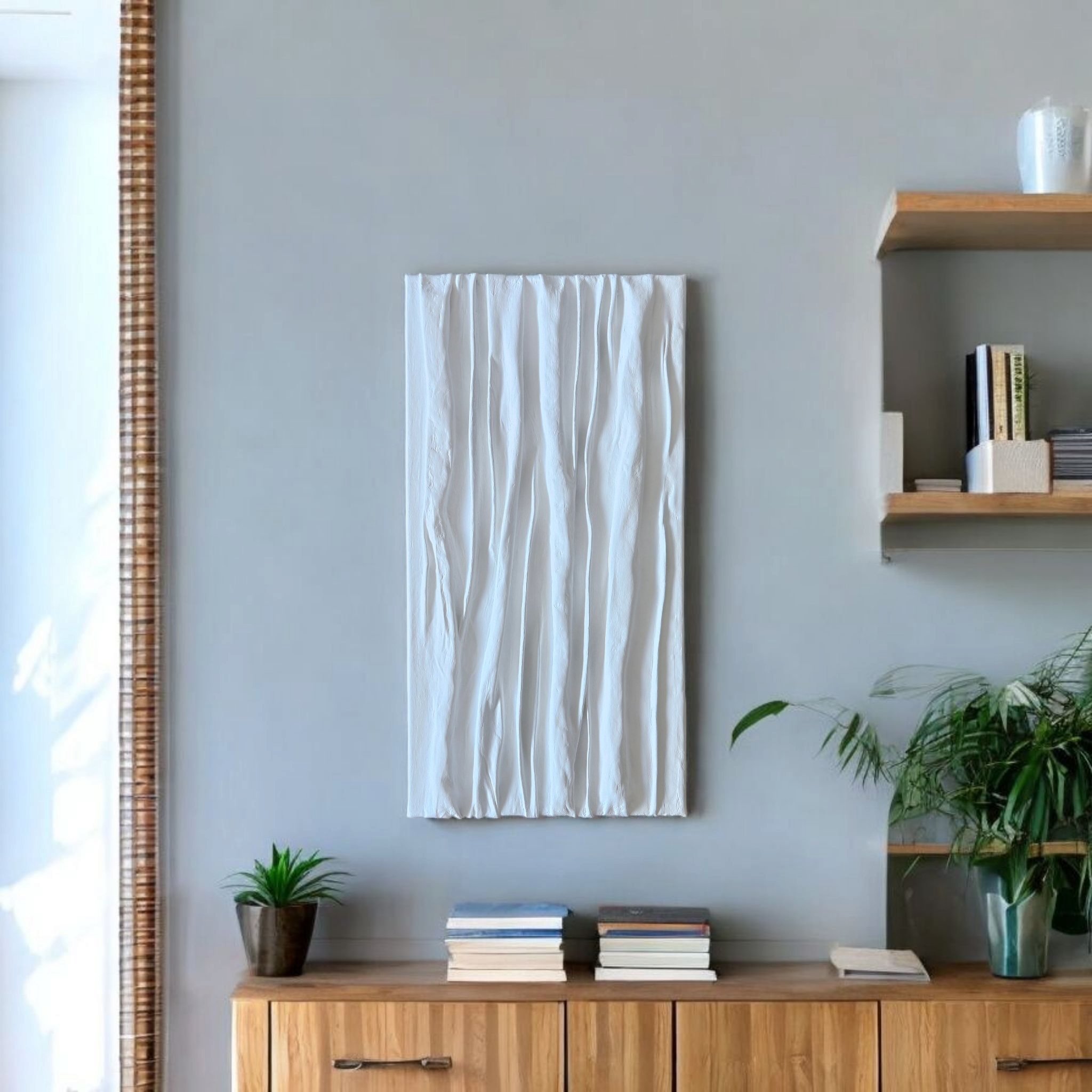 White Contours" by Eva JohnovaSize 38 x 76 x 3.8cm White Contours is a sculptural...