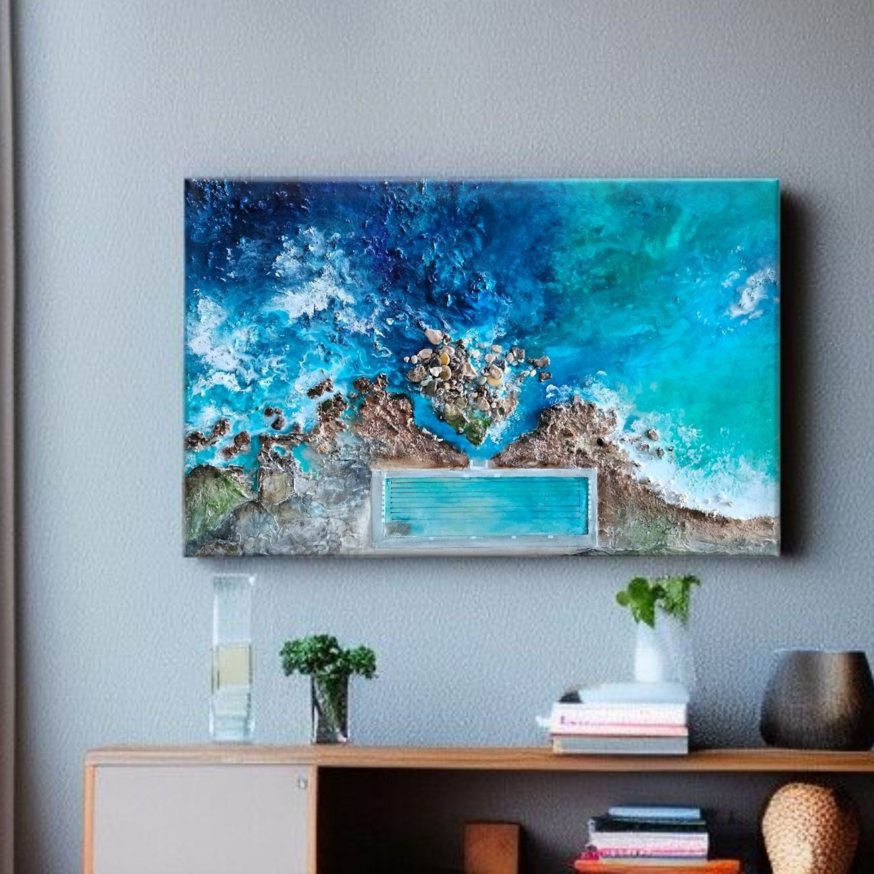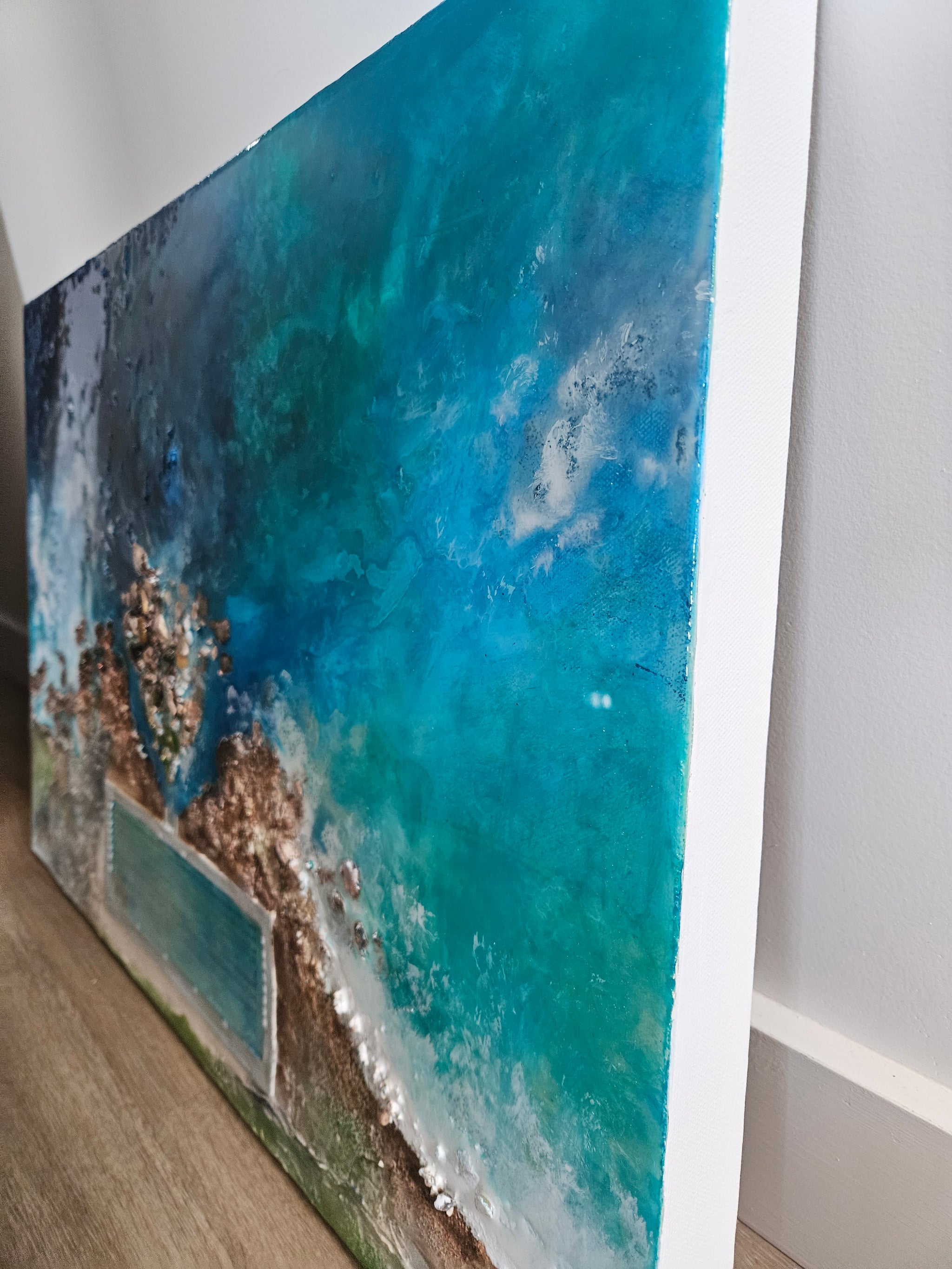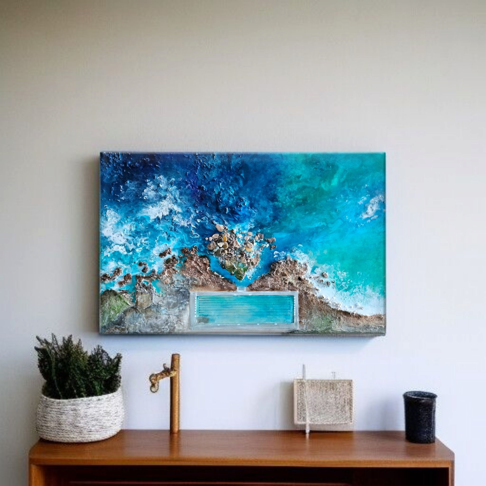 An original abstract artwork showcasing the beauty of ocean water and the stunning Freshwater Rockpool located in Sydney.