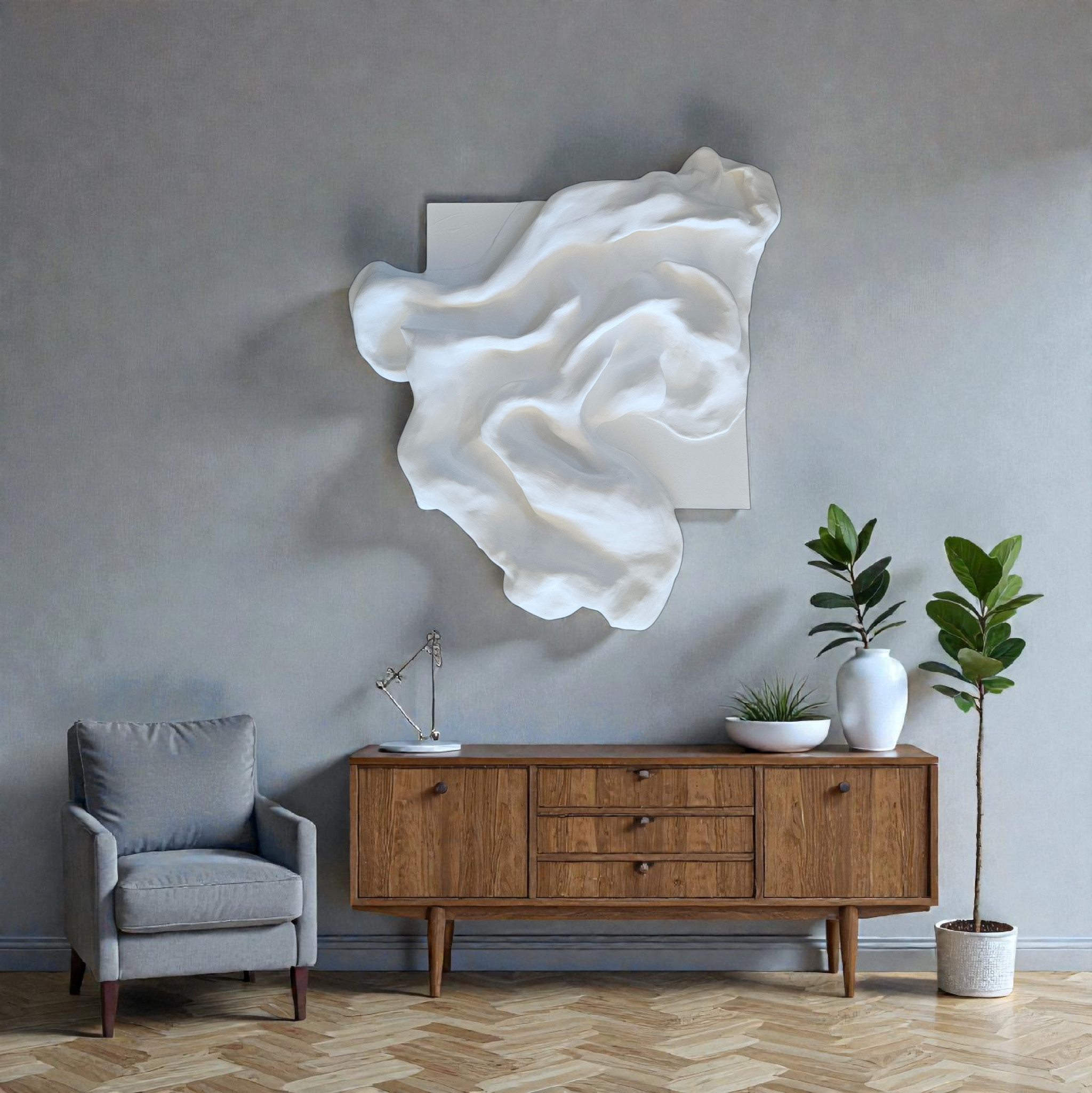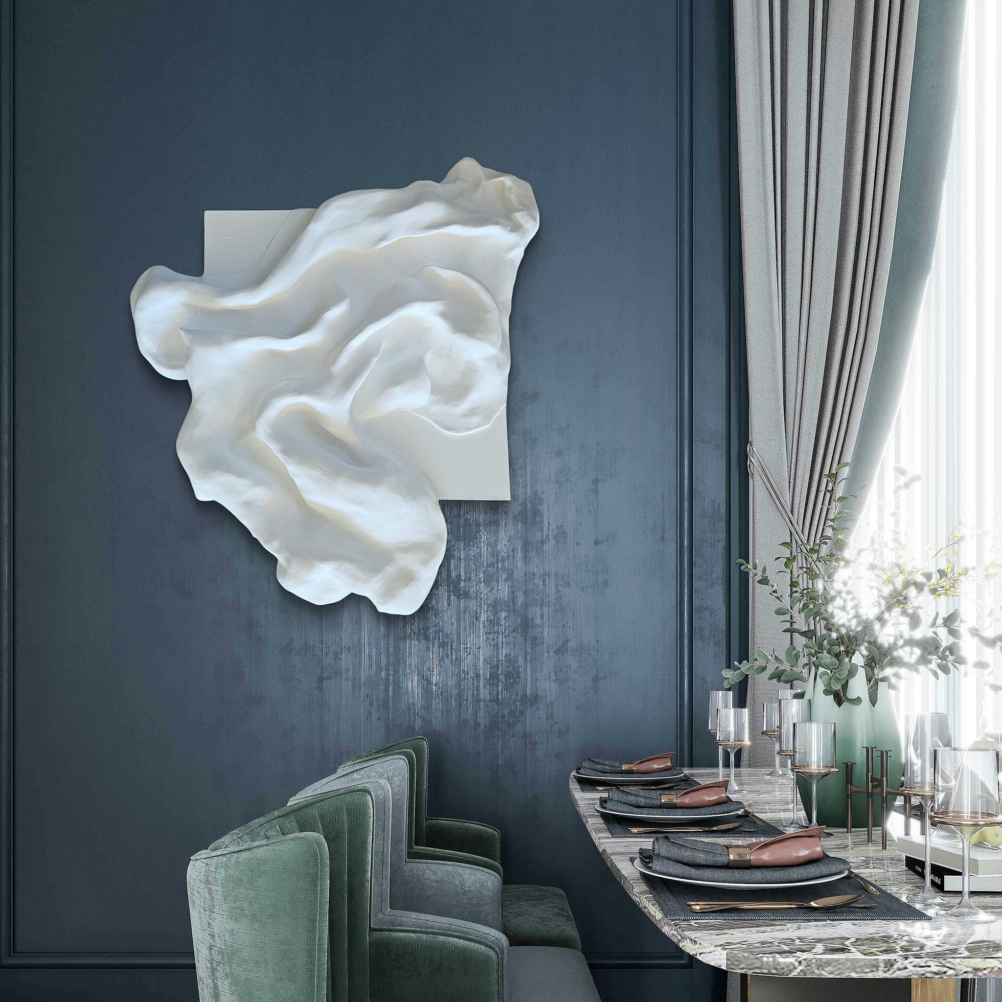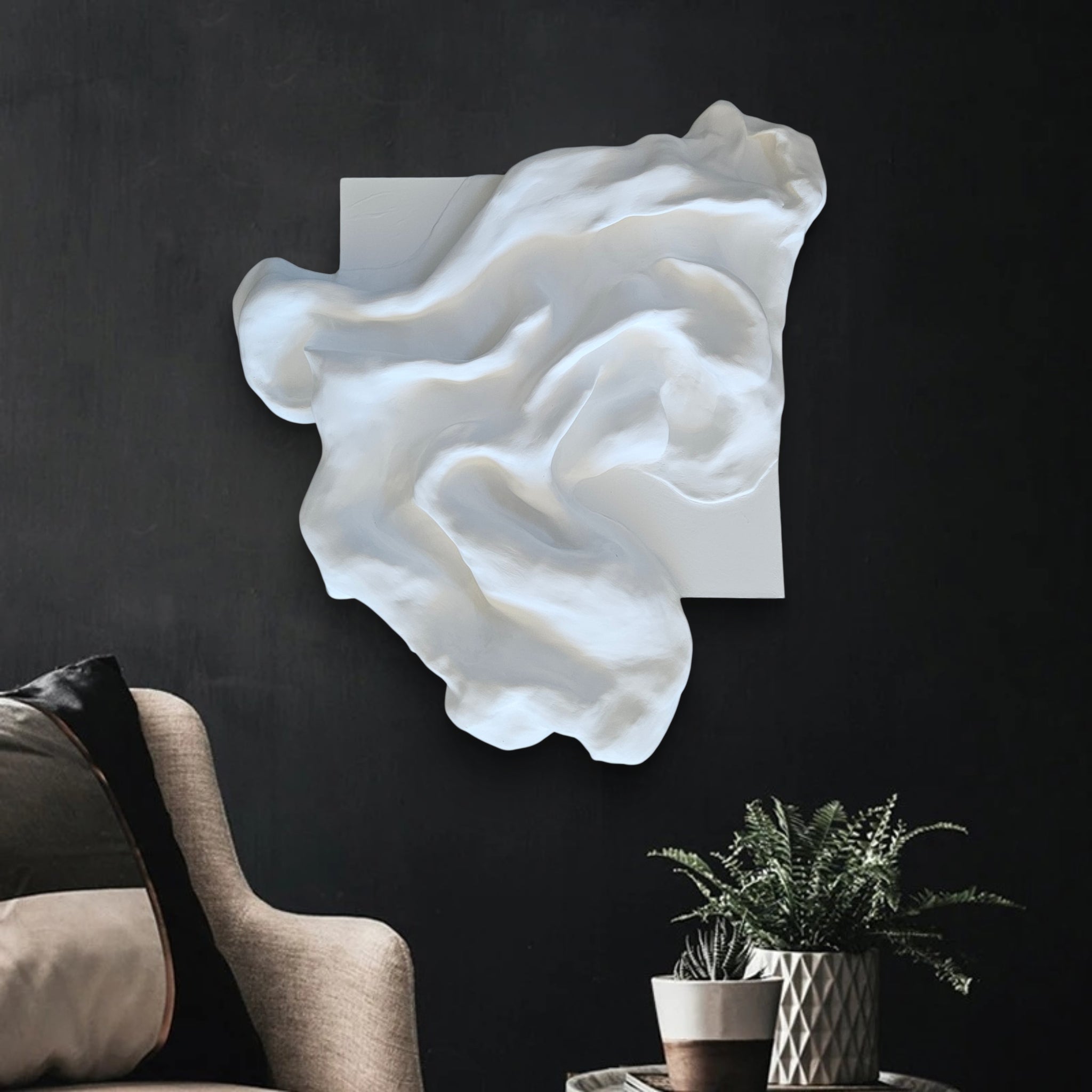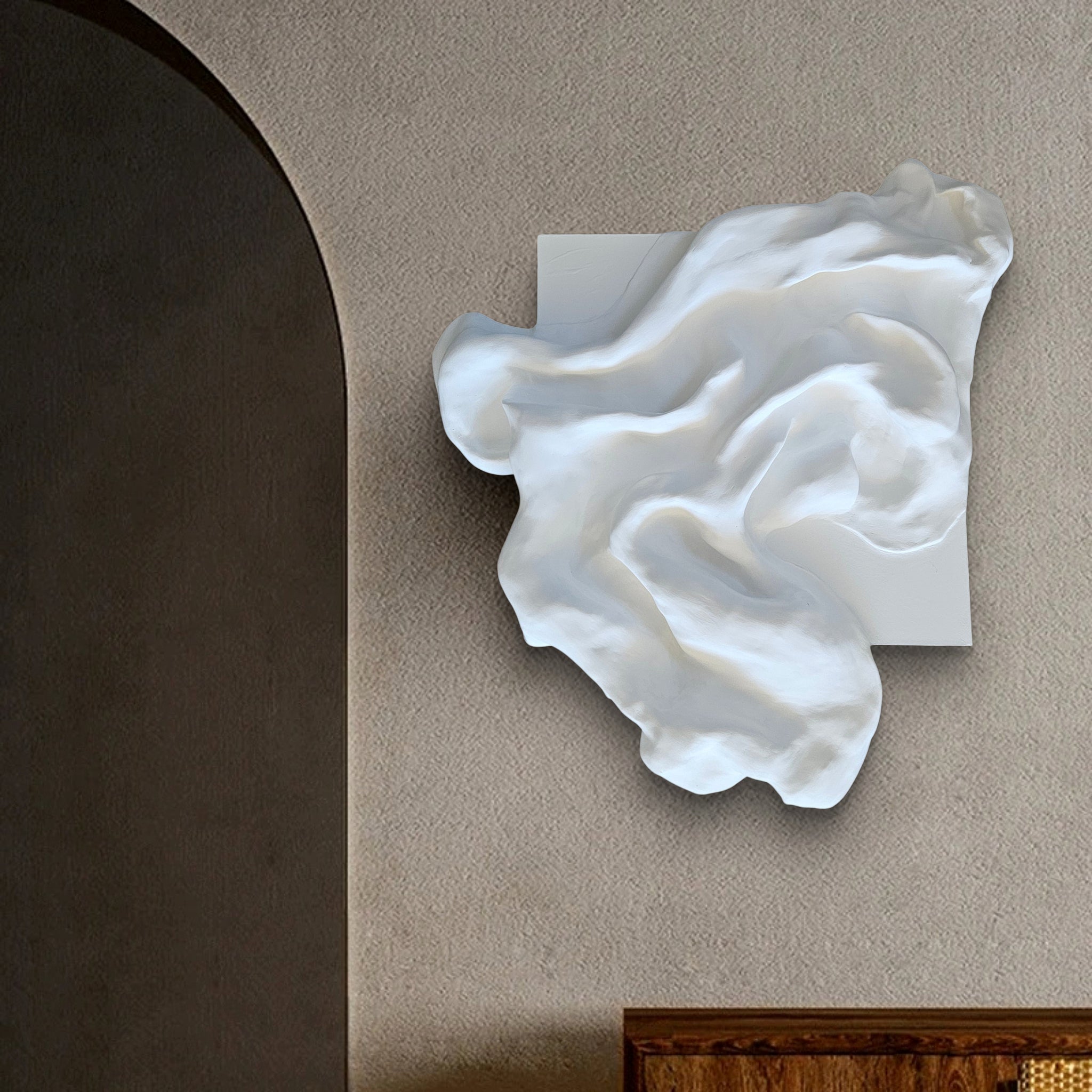 White Contours 2 is a sculptural wall piece that blends minimalist elegance with organic movement.
