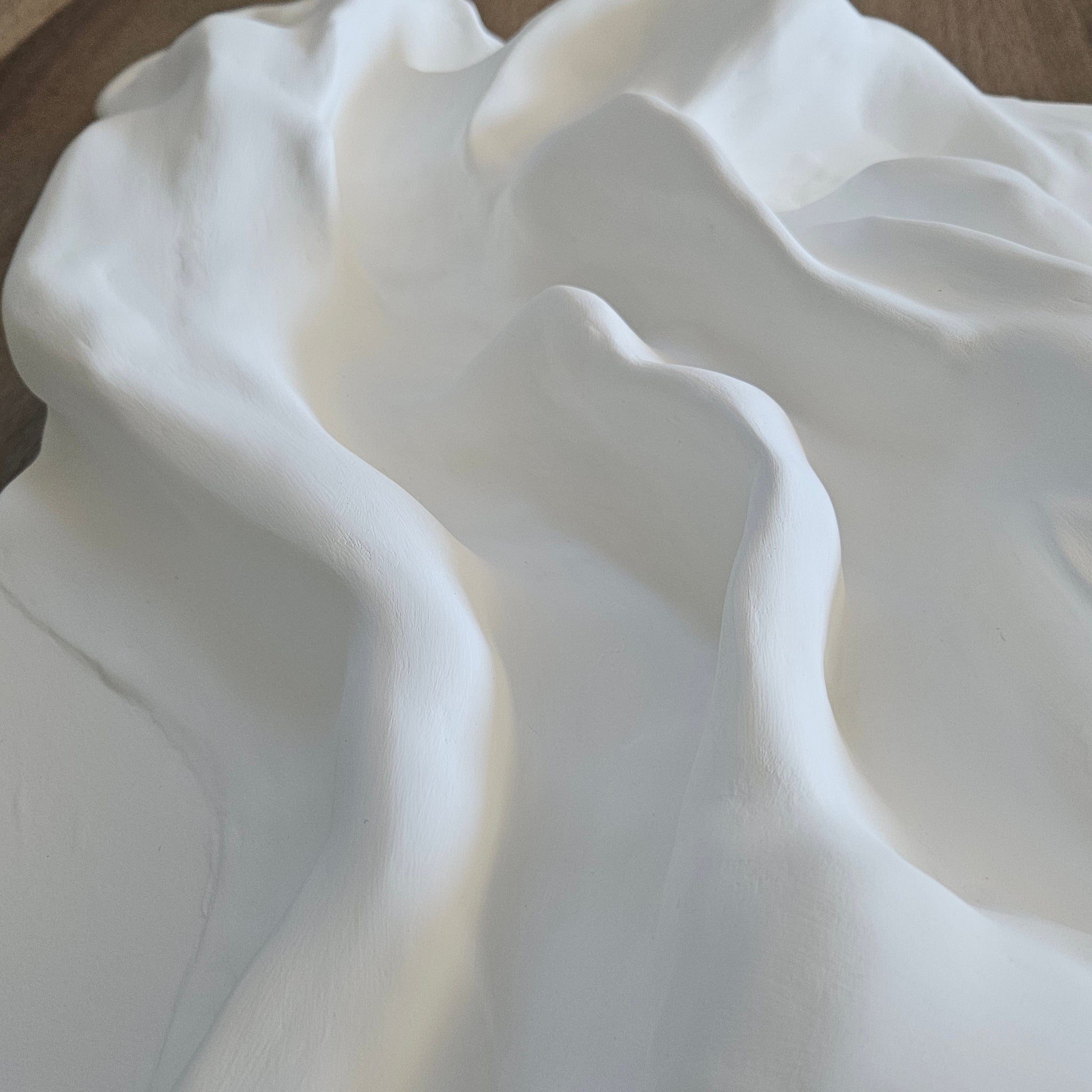 This piece explores the poetry of motion held in stillness. Each fold and silhouette is shaped by hand, celebrating organic imperfection and the calming beauty of tactile form.